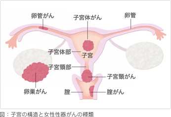 なお、子宮にできるがんには、他にも、赤ちゃんが育つ「子宮体部(しきゅうたいぶ)」にできるがんがあり、「子宮体がん(しきゅうたいがん)」別名「子宮内膜がん(しきゅうないまくがん)」と呼びます。一般に「子宮がん」というと「子宮体がん」をイメージする方が多いのですが、この2種類のがんは、原因や発症しやすい年齢・特徴・治療法などが違うため、それぞれについて正しい知識が必要です。