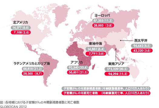 各地域における子宮頸がんの年間新規罹患数と死亡者数